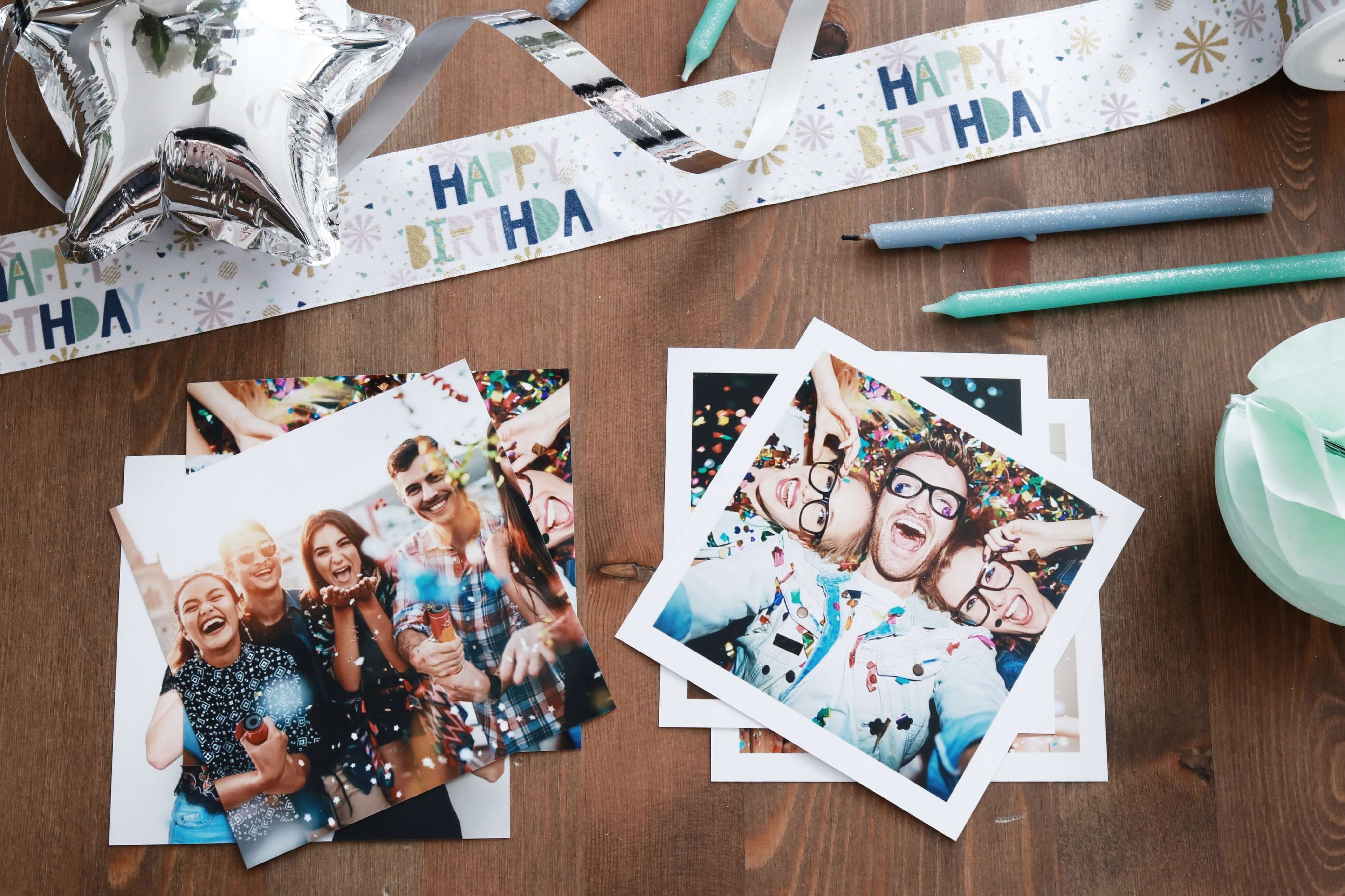 Bestelle die 24 schönsten Fotohighlights deiner Party als ifolor Square Prints. Die quadratischen Abzüge kannst du wahlweise mit oder ohne weissen Rand bestellen. Für eine Fotowand wirken die Fotos mit weissem Rand besonders schick und du kannst den Rand nutzen, um z. B. die Namen der abgebildeten Gäste darauf zu schreiben. Zudem werden deine Square Prints in einer trendigen Box geliefert, die du per Hand mit dem Thema und dem Datum deiner Party beschriften kannst – so hast du deine besten Partyerinnerungen immer schnell griffbereit.