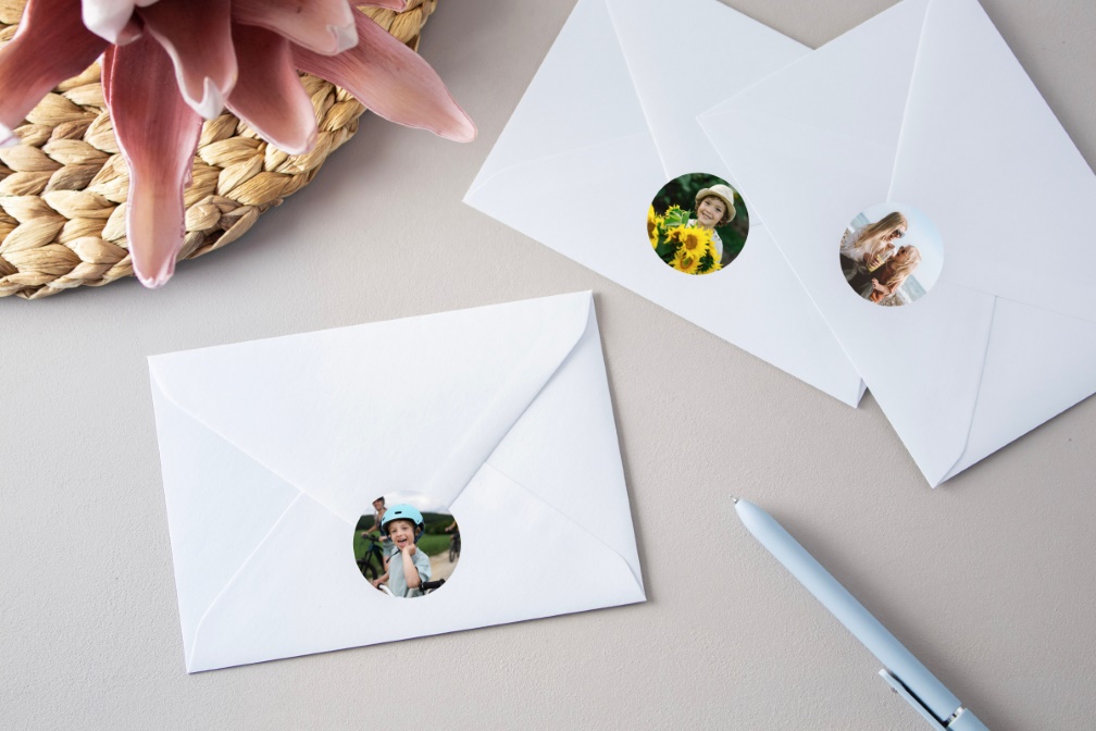Die ifolor Fotosticker gibt es in rund oder rechteckig und du kannst jeden Sticker einzeln gestalten – 12 runde oder 16 rechteckige pro Bogen. Durch die matte Oberfläche kommen deine Fotos darauf hochwertig zur Geltung. Nutze sie als personalisiertes Siegel für den Briefumschlag deiner Muttertagskarte oder als Extra-Verzierung für die Muttertagsgrüsse auf der Innenseite der Karte.