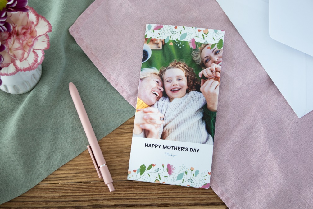Eine Klappkarte bietet dir extra viel Platz für deine Muttertagsgrüsse und ein besonderes Foto oder eine ganz Collage aus euren schönsten gemeinsamen Momenten.