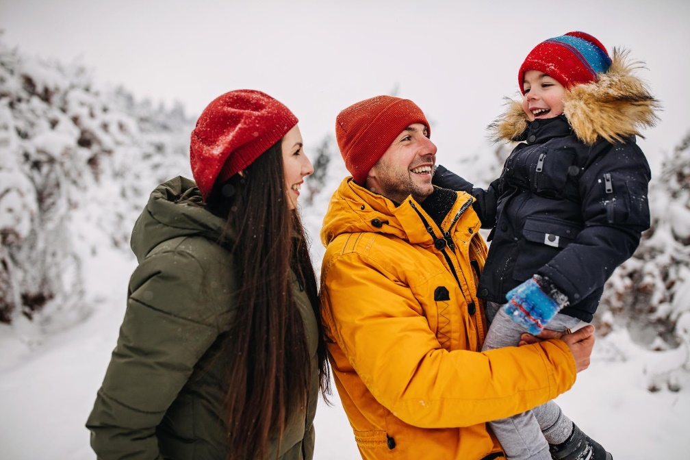 Ist der Himmel wolkenverhangen, werden kontrastreiche Aufnahmen von Landschaften schwierig. Nutze diesen Effekt und stelle deine Liebsten in den Fokus. Verschwimmt der Himmel mit der Landschaft, kommen vor dieser Szenerie vor allem bunt angezogene Menschen besonders gut zur Geltung. Platziere deine Liebsten beispielsweise vor einer schneebedeckten Landschaft und wähle an deiner Kamera eine Belichtungszeit von 1/50 Sekunden. Mit dieser Belichtungszeit kannst du tolle Aufnahmen auch ohne ein Stativ knipsen. Fotografierst du mit deinem Smartphone wähle den Porträt-Modus, um Menschen vor Schnee und Wolken zu fotografieren.